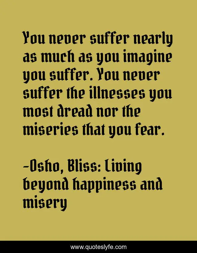 "Osho, Bliss: Living beyond happiness and misery Quotes." Quoteslyfe.com, 2025. Tue. 09 Dec. 2025. <https://www.quoteslyfe.com/quote/You-never-suffer-nearly-as-much-as-255425>.