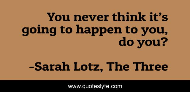 "Sarah Lotz, The Three Quotes." Quoteslyfe.com, 2025. Sat. 06 Dec. 2025. <https://www.quoteslyfe.com/quote/You-never-think-it-s-going-to-232809>.