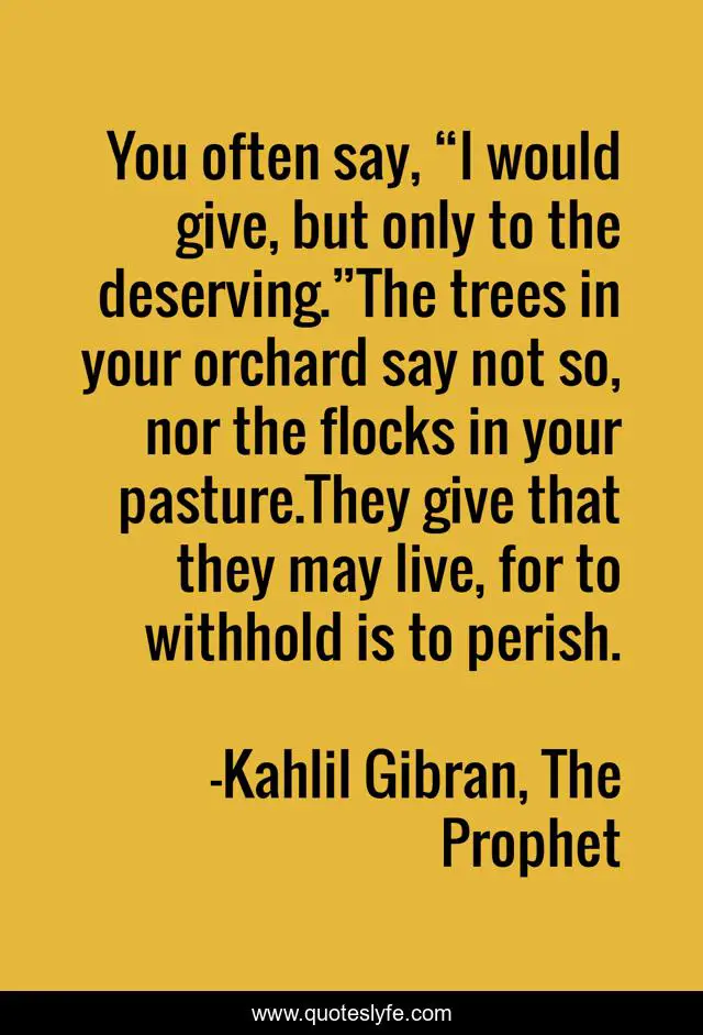 You often say, “I would give, but only to the deserving.”The trees in your orchard say not so, nor the flocks in your pasture.They give that they may live, for to withhold is to perish.