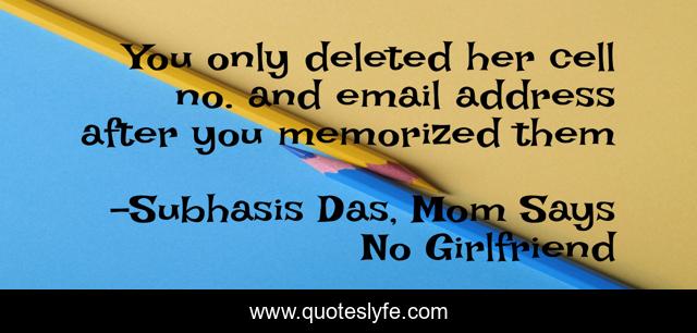 This page presents the quote "You only deleted her cell no. and email address after you memorized them". Author of this quote is Subhasis Das, Mom Says No Girlfriend. .