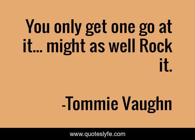 This page presents the quote "You only get one go at it... might as well Rock it.". Author of this quote is Tommie Vaughn. This quote is about fun, random, music, lyrics, rock,.