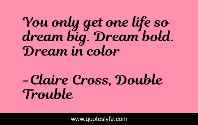 "Claire Cross, Double Trouble Quotes." Quoteslyfe.com, 2025. Sun. 07 Dec. 2025. <https://www.quoteslyfe.com/quote/You-only-get-one-life-so-dream-131492>.