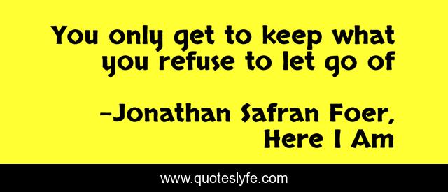 This page presents the quote "You only get to keep what you refuse to let go of". Author of this quote is Jonathan Safran Foer, Here I Am. This quote is about inspirational-about-life, moving-on-and-letting-go,.