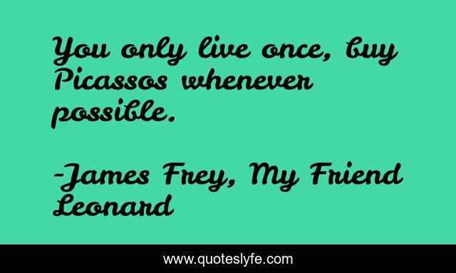 This page presents the quote "You only live once, buy Picassos whenever possible.". Author of this quote is James Frey, My Friend Leonard. This quote is about living, picasso,.