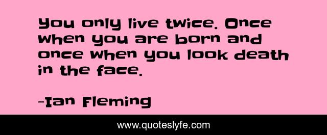This page presents the quote "You only live twice. Once when you are born and once when you look death in the face.". Author of this quote is Ian Fleming. This quote is about born, live,.