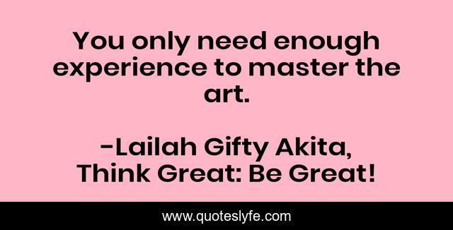 "Lailah Gifty Akita, Think Great: Be Great! Quotes." Quoteslyfe.com, 2025. Fri. 05 Dec. 2025. <https://www.quoteslyfe.com/quote/You-only-need-enough-experience-to-master-158694>.