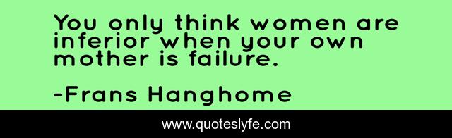 This page presents the quote "You only think women are inferior when your own mother is failure.". Author of this quote is Frans Hanghome. .