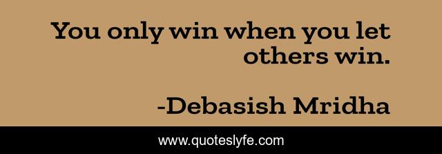 This page presents the quote "You only win when you let others win.". Author of this quote is Debasish Mridha. This quote is about win, philosophy, debasish-mridha, how-to-win, quotes, inspirational, enthusiasm, winning, debasish-mridha-m-d,.