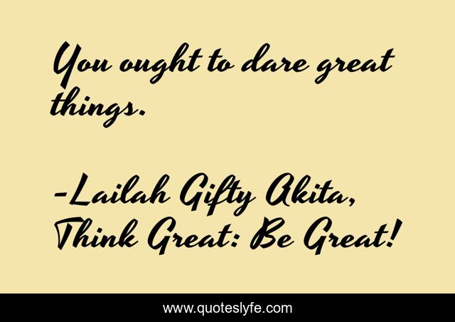 "Lailah Gifty Akita, Think Great: Be Great! Quotes." Quoteslyfe.com, 2025. Tue. 09 Dec. 2025. <https://www.quoteslyfe.com/quote/You-ought-to-dare-great-things-92740>.