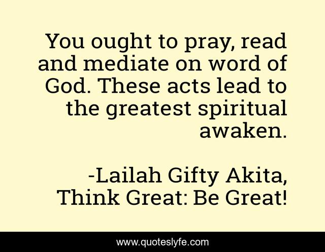"Lailah Gifty Akita, Think Great: Be Great! Quotes." Quoteslyfe.com, 2025. Sat. 06 Dec. 2025. <https://www.quoteslyfe.com/quote/You-ought-to-pray-read-and-mediate-62610>.