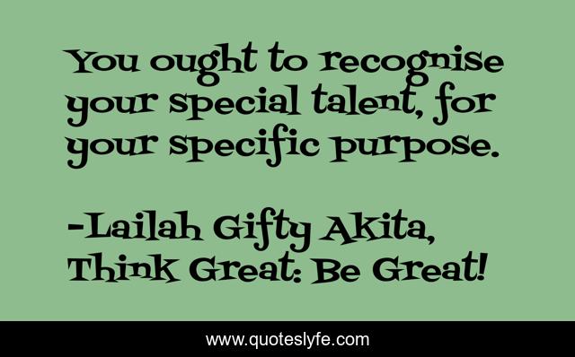 "Lailah Gifty Akita, Think Great: Be Great! Quotes." Quoteslyfe.com, 2025. Fri. 05 Dec. 2025. <https://www.quoteslyfe.com/quote/You-ought-to-recognise-your-special-talent-91755>.