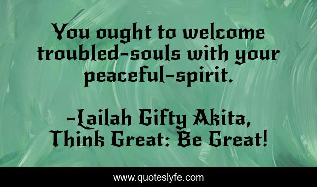 "Lailah Gifty Akita, Think Great: Be Great! Quotes." Quoteslyfe.com, 2025. Fri. 05 Dec. 2025. <https://www.quoteslyfe.com/quote/You-ought-to-welcome-troubled-souls-with-73876>.