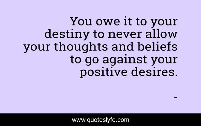 You owe it to your destiny to never allow your thoughts and beliefs to go against your positive desires.
