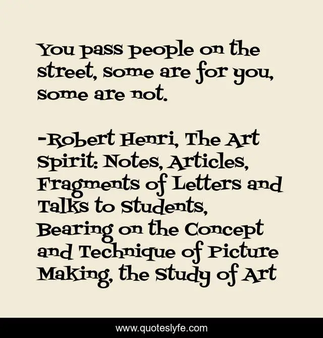"Robert Henri, The Art Spirit: Notes, Articles, Fragments of Letters and Talks to Students, Bearing on the Concept and Technique of Picture Making, the Study of Art Quotes." Quoteslyfe.com, 2025. Mon. 08 Dec. 2025. <https://www.quoteslyfe.com/quote/You-pass-people-on-the-street-some-126599>.