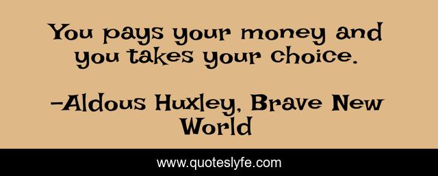 "Aldous Huxley, Brave New World Quotes." Quoteslyfe.com, 2025. Sat. 06 Dec. 2025. <https://www.quoteslyfe.com/quote/You-pays-your-money-and-you-takes-157521>.