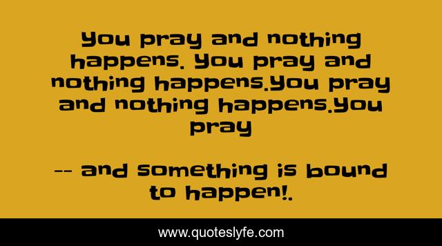 This page presents the quote "You pray and nothing happens. You pray and nothing happens.You pray and nothing happens.You pray". Author of this quote is - and something is bound to happen!.. .