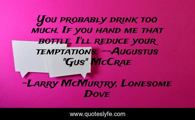 This page presents the quote "You probably drink too much. If you hand me that bottle, I'll reduce your temptations. --Augustus "Gus" McCrae". Author of this quote is Larry McMurtry, Lonesome Dove. .