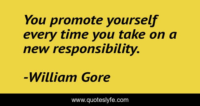 This page presents the quote "You promote yourself every time you take on a new responsibility.". Author of this quote is William Gore. This quote is about lifetime-version, motivate, inspire, action-handbook, motivational-inspirational, inspirational-living, motivational, motivational-living, motivation,.