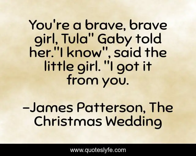 "James Patterson, The Christmas Wedding Quotes." Quoteslyfe.com, 2025. Sat. 06 Dec. 2025. <https://www.quoteslyfe.com/quote/You-re-a-brave-brave-girl-Tula-249634>.