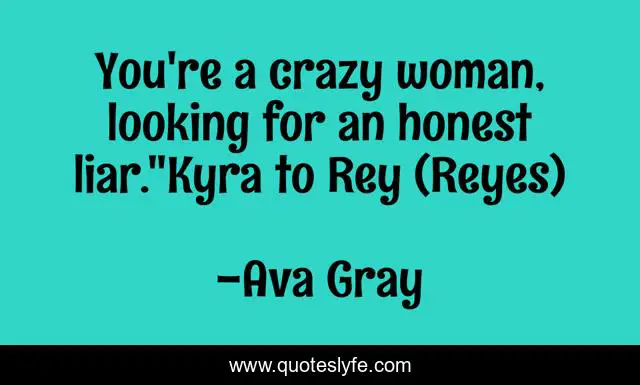 This page presents the quote "You're a crazy woman, looking for an honest liar."Kyra to Rey (Reyes)". Author of this quote is Ava Gray. .