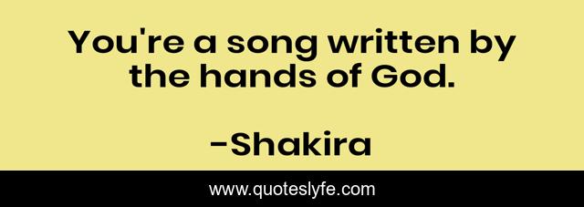 This page presents the quote "You're a song written by the hands of God.". Author of this quote is Shakira. This quote is about song, hands,.