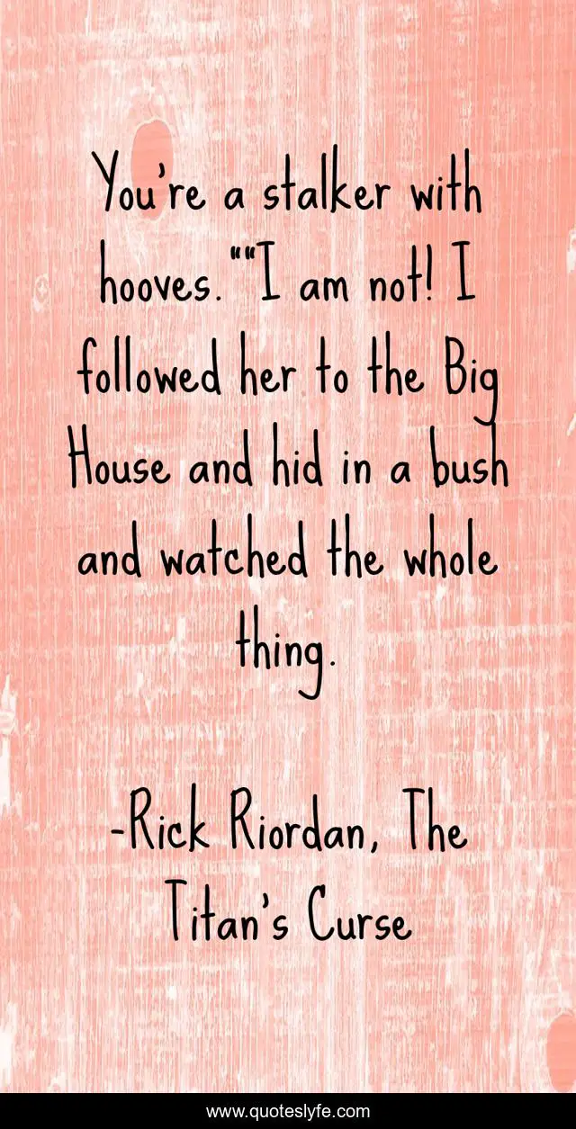 "Rick Riordan, The Titan's Curse Quotes." Quoteslyfe.com, 2025. Fri. 05 Dec. 2025. <https://www.quoteslyfe.com/quote/You-re-a-stalker-with-hooves-I-5711>.