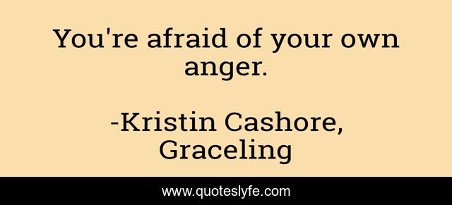 This page presents the quote "You're afraid of your own anger.". Author of this quote is Kristin Cashore, Graceling. This quote is about anger, fear,.