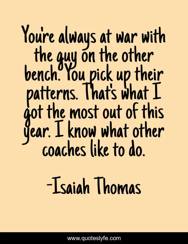 This page presents the quote "You're always at war with the guy on the other bench. You pick up their patterns. That's what I got the most out of this year. I know what other coaches like to do.". Author of this quote is Isaiah Thomas. .