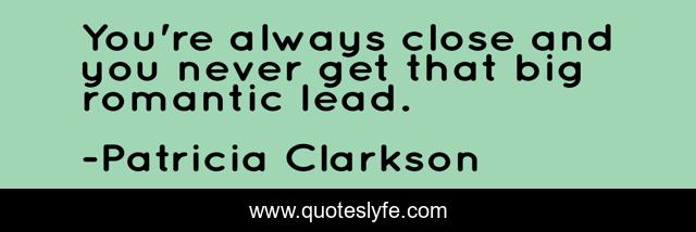 This page presents the quote "You're always close and you never get that big romantic lead.". Author of this quote is Patricia Clarkson. .