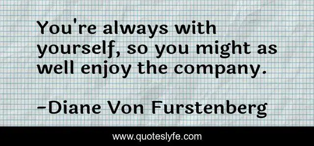 This page presents the quote "You're always with yourself, so you might as well enjoy the company.". Author of this quote is Diane Von Furstenberg. This quote is about self-acceptance, life, self-esteem,.
