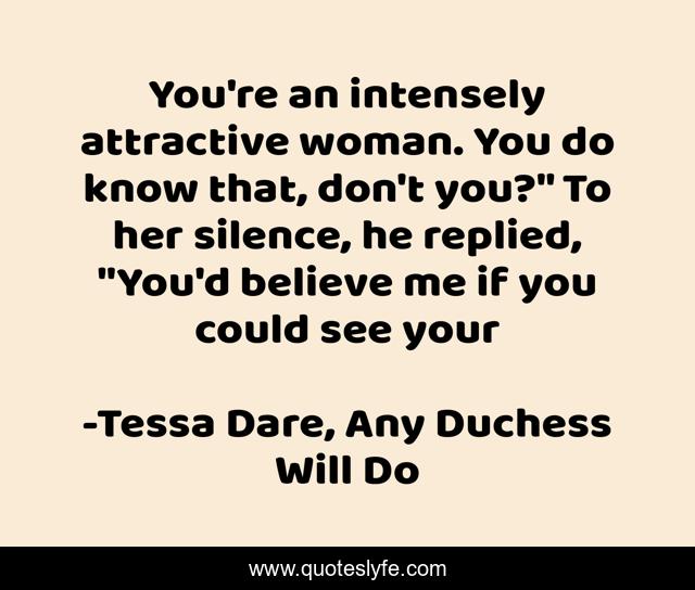 "Tessa Dare, Any Duchess Will Do Quotes." Quoteslyfe.com, 2025. Sat. 06 Dec. 2025. <https://www.quoteslyfe.com/quote/You-re-an-intensely-attractive-woman-You-197298>.