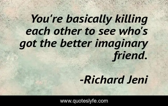 This page presents the quote "You're basically killing each other to see who's got the better imaginary friend.". Author of this quote is Richard Jeni. .