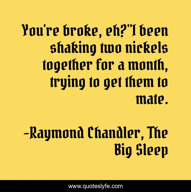 "Raymond Chandler, The Big Sleep Quotes." Quoteslyfe.com, 2025. Fri. 05 Dec. 2025. <https://www.quoteslyfe.com/quote/You-re-broke-eh-I-been-shaking-79787>.