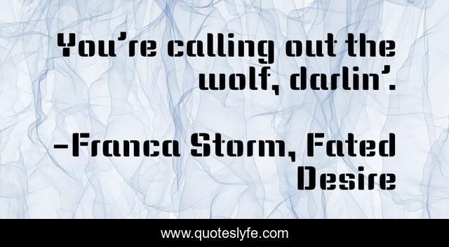 "Franca Storm, Fated Desire Quotes." Quoteslyfe.com, 2025. Sat. 06 Dec. 2025. <https://www.quoteslyfe.com/quote/You-re-calling-out-the-wolf-darlin-202664>.