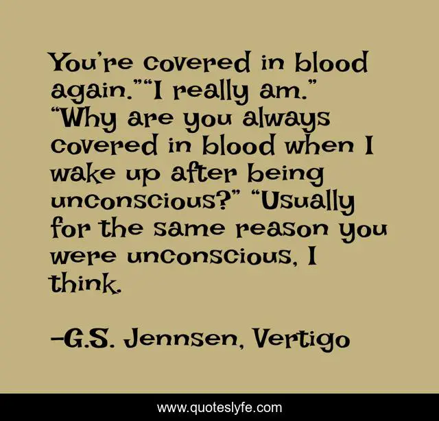 "G.S. Jennsen, Vertigo Quotes." Quoteslyfe.com, 2025. Sat. 06 Dec. 2025. <https://www.quoteslyfe.com/quote/You-re-covered-in-blood-again-I-151802>.