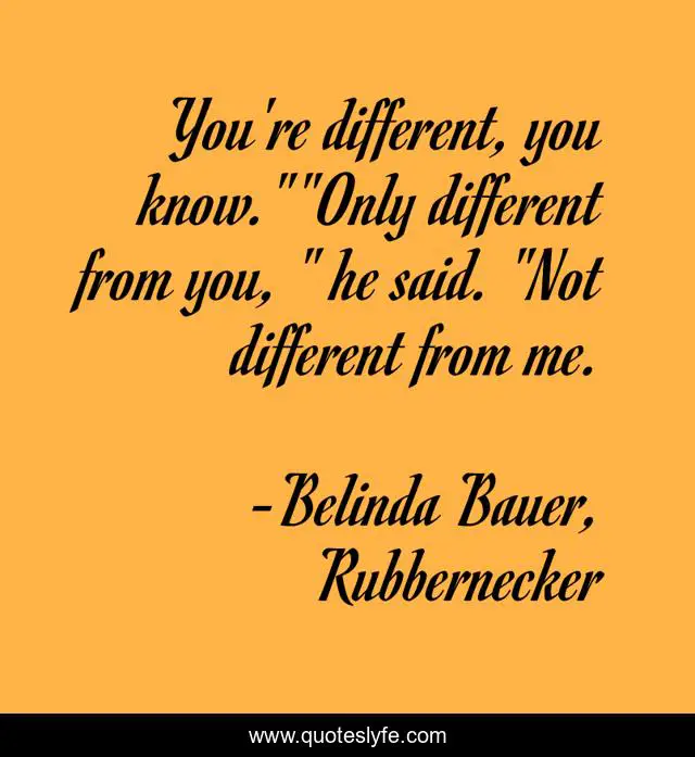 "Belinda Bauer, Rubbernecker Quotes." Quoteslyfe.com, 2025. Fri. 05 Dec. 2025. <https://www.quoteslyfe.com/quote/You-re-different-you-know-Only-different-214665>.