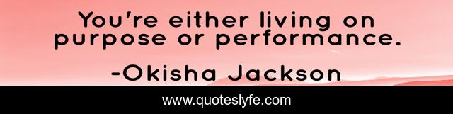 This page presents the quote "You're either living on purpose or performance.". Author of this quote is Okisha Jackson. .
