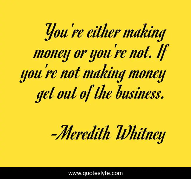 This page presents the quote "You're either making money or you're not. If you're not making money get out of the business.". Author of this quote is Meredith Whitney. This quote is about money, making money,.