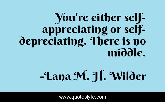 This page presents the quote "You're either self-appreciating or self-depreciating. There is no middle.". Author of this quote is Lana M. H. Wilder. This quote is about loving-yourself, self-love, appreciation, self-appreciation, middle, lana-m-h-wilder, depreciation, wilderwhimsy, lana-wilder,.