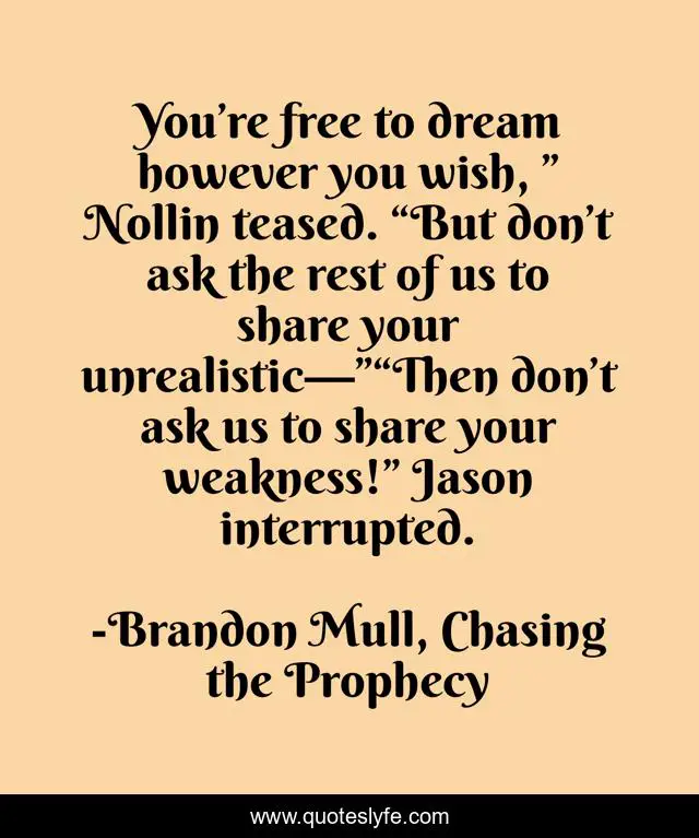 "Brandon Mull, Chasing the Prophecy Quotes." Quoteslyfe.com, 2025. Fri. 05 Dec. 2025. <https://www.quoteslyfe.com/quote/You-re-free-to-dream-however-you-104944>.