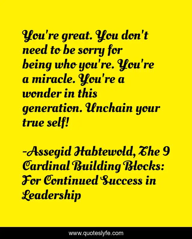 "Assegid Habtewold, The 9 Cardinal Building Blocks: For Continued Success in Leadership Quotes." Quoteslyfe.com, 2025. Sun. 07 Dec. 2025. <https://www.quoteslyfe.com/quote/You-re-great-You-don-t-need-197978>.