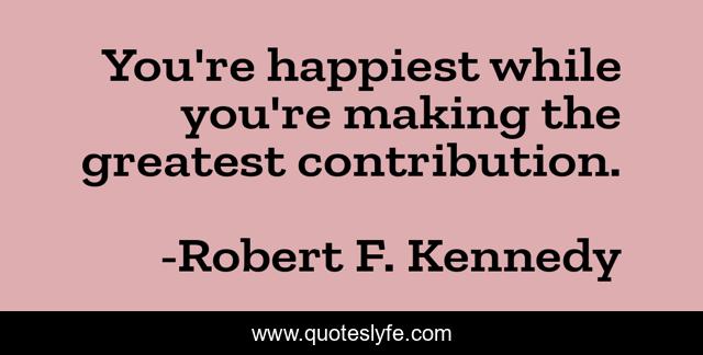 This page presents the quote "You're happiest while you're making the greatest contribution.". Author of this quote is Robert F. Kennedy. .