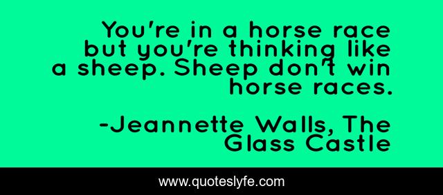 This page presents the quote "You're in a horse race but you're thinking like a sheep. Sheep don't win horse races.". Author of this quote is Jeannette Walls, The Glass Castle. This quote is about life, race, individualism,.