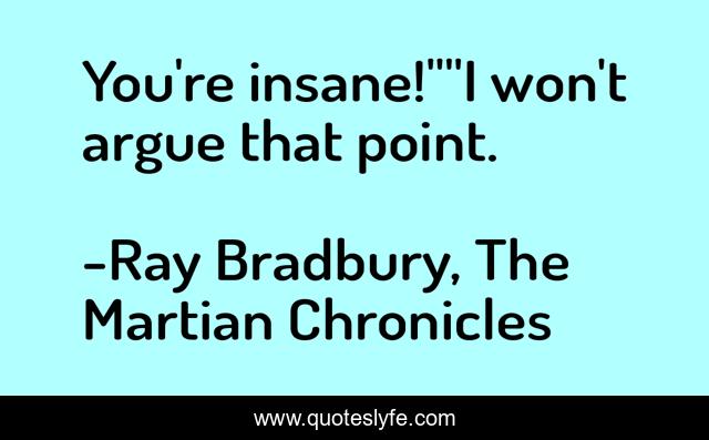 "Ray Bradbury, The Martian Chronicles Quotes." Quoteslyfe.com, 2025. Fri. 05 Dec. 2025. <https://www.quoteslyfe.com/quote/You-re-insane-I-won-t-argue-186578>.