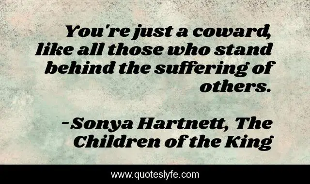 This page presents the quote "You're just a coward, like all those who stand behind the suffering of others.". Author of this quote is Sonya Hartnett, The Children of the King. .