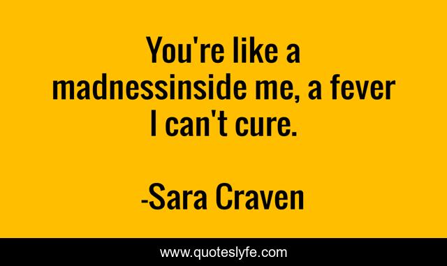 This page presents the quote "You're like a madnessinside me, a fever I can't cure.". Author of this quote is Sara Craven. This quote is about love, passion, affection, passionate-love,.