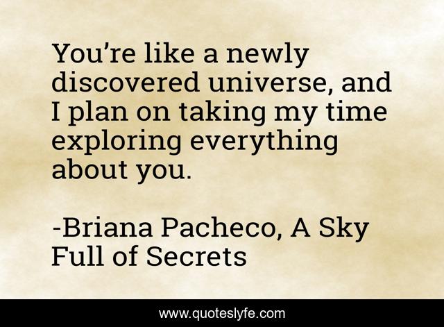 This page presents the quote "You’re like a newly discovered universe, and I plan on taking my time exploring everything about you.". Author of this quote is Briana Pacheco, A Sky Full of Secrets. This quote is about new-adult, romance, contemporary,.