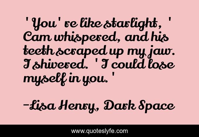 This page presents the quote "'You're like starlight, ' Cam whispered, and his teeth scraped up my jaw. I shivered. 'I could lose myself in you.'". Author of this quote is Lisa Henry, Dark Space. This quote is about m-m-romance, love, science-fiction, affection,.