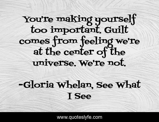 "Gloria Whelan, See What I See Quotes." Quoteslyfe.com, 2025. Sat. 06 Dec. 2025. <https://www.quoteslyfe.com/quote/You-re-making-yourself-too-important-Guilt-223420>.