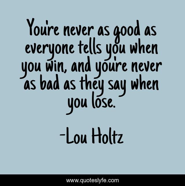 This page presents the quote "You're never as good as everyone tells you when you win, and you're never as bad as they say when you lose.". Author of this quote is Lou Holtz. This quote is about motivation, inspiration,.